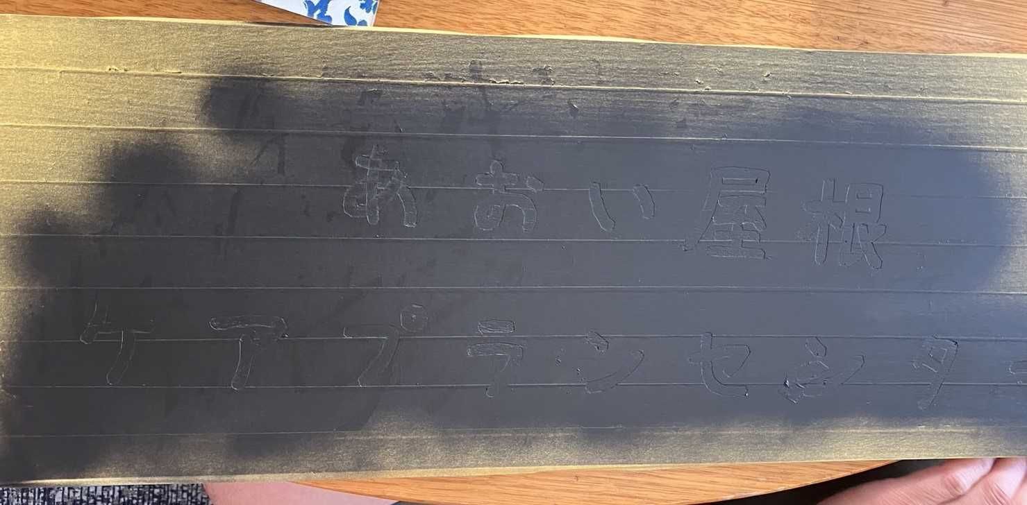 次にプリントした『あおい屋根ケアプランセンター』の文字を上から貼ります。